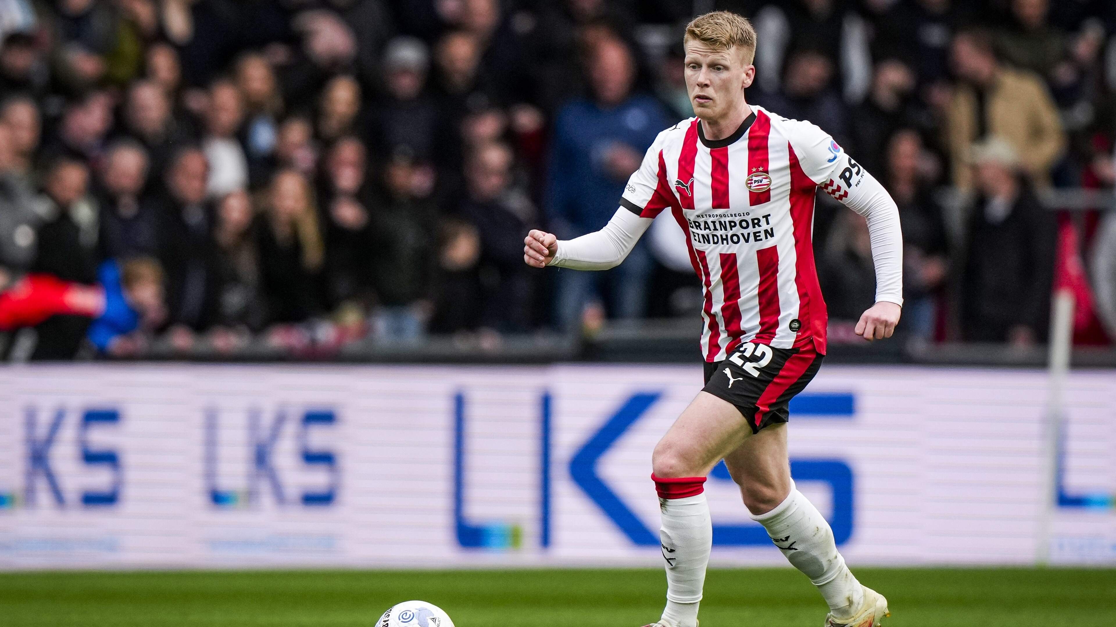 Het aanvoerderschap en de permanente verhuizing naar het centrum van de verdediging hebben een nieuwe dimensie gegeven aan de derde opeenvolgende titel van Jerdy Schouten bij PSV, dat door de uitglijder van Feyenoord tegen FC Volendam al op speeldag 29 niet meer te achterhalen is door de concurrentie. Maar de kruisbandblessure, die hem ook de WK-deelname zal kosten, legt een grauwsluier over de derde landstitel.